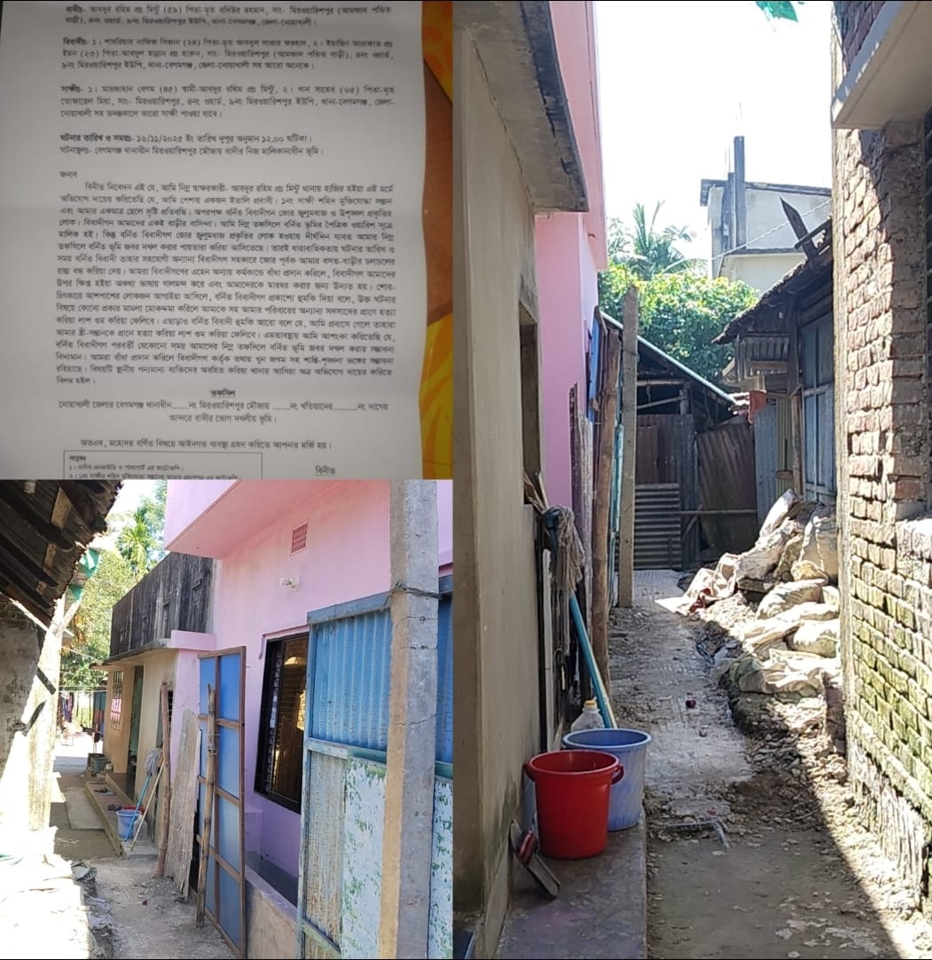 নোয়াখালীতে শহীদ পরিবারের সন্তান তার দৃষ্টি প্রতিবন্ধী ছেলের ঘরের সামনে বেড়া দিয়ে চলাচল বন্ধের অভিযোগ